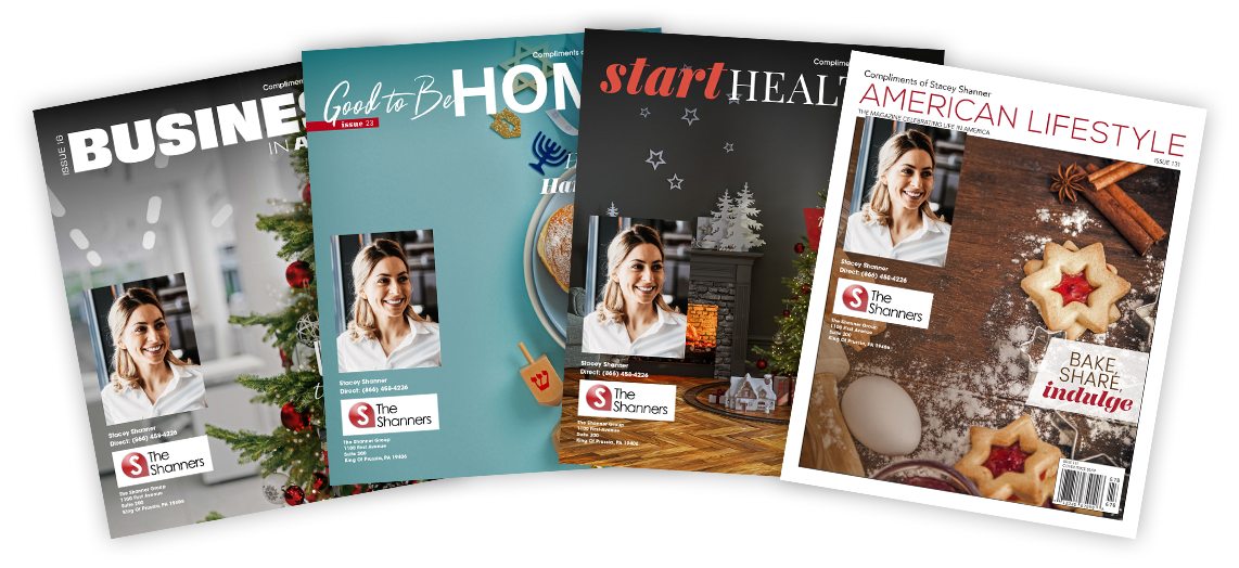 We produce the professionally designed and written articles, and you get to add your photo and branding as well as a custom ad on the back and back inside cover and a custom letter on the front inside cover!
